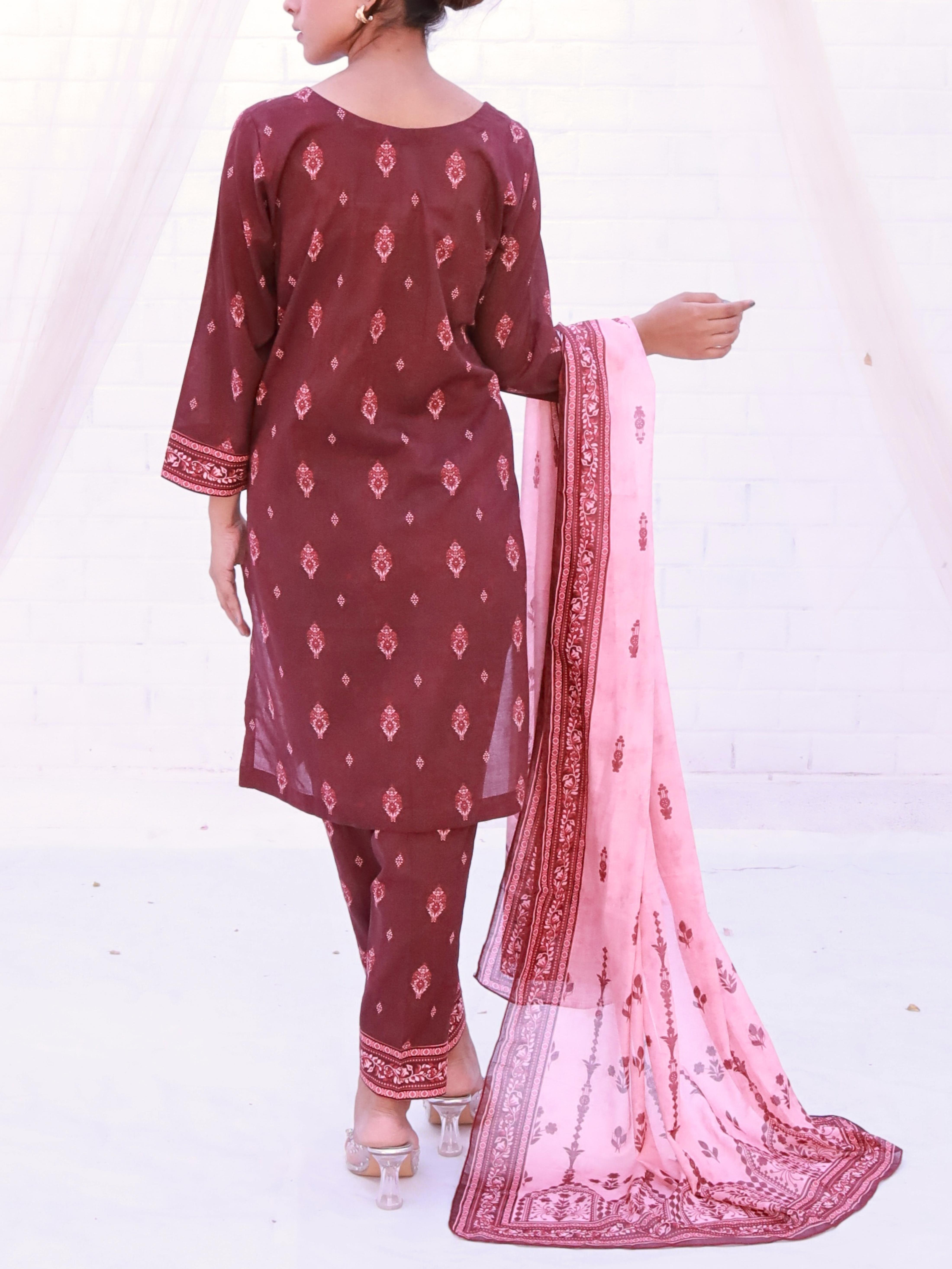 3 Piece Printed Cambric Suit (ICV02-3PC-004)
